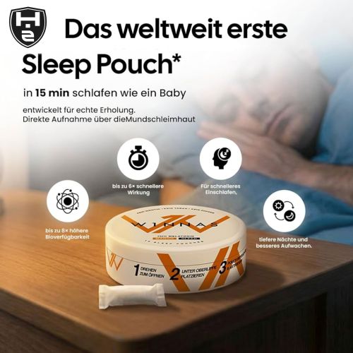W1NNAS Sleep Pouches sind frei von Tabak und Nikotin und die weltweit ersten Pouches, die gezielt für Entspannung, Regeneration und Schlaf entwickelt wurden. Sie enthalten funktionale Inhaltsstoffe, die dabei helfen, nach dem Training oder einem anstrengenden Tag zur Ruhe zu kommen, Stress abzubauen und die Erholung optimal zu unterstützen. Ideal vor dem Zubettgehen, um die Schlafqualität zu verbessern und das Maximum aus der nächtlichen Regeneration herauszuholen. Auch auf langen Reisen, bei Jetlag oder in Phasen erhöhter Belastung sind sie perfekt geeignet – sie erleichtern das Einschlafen und fördern einen tiefen, erholsamen Schlaf.